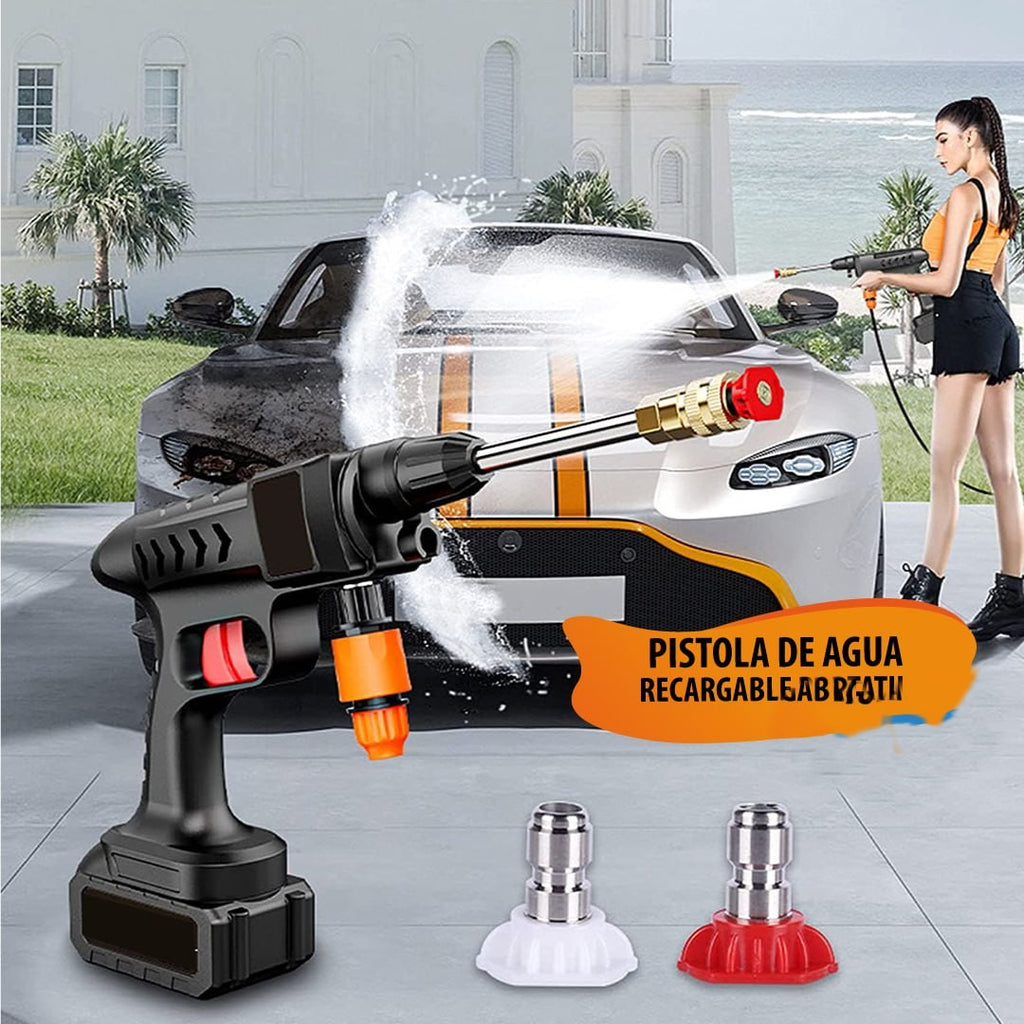 ¡Adiós suciedad, hola brillo! 🚗✨ Con la Pistola de Agua Recargable, lava tu carro con potencia y comodidad, sin cables y con la presión ideal para dejarlo impecable. ¡Llévatela y haz que tu auto luzca como nuevo!" 💦🔥